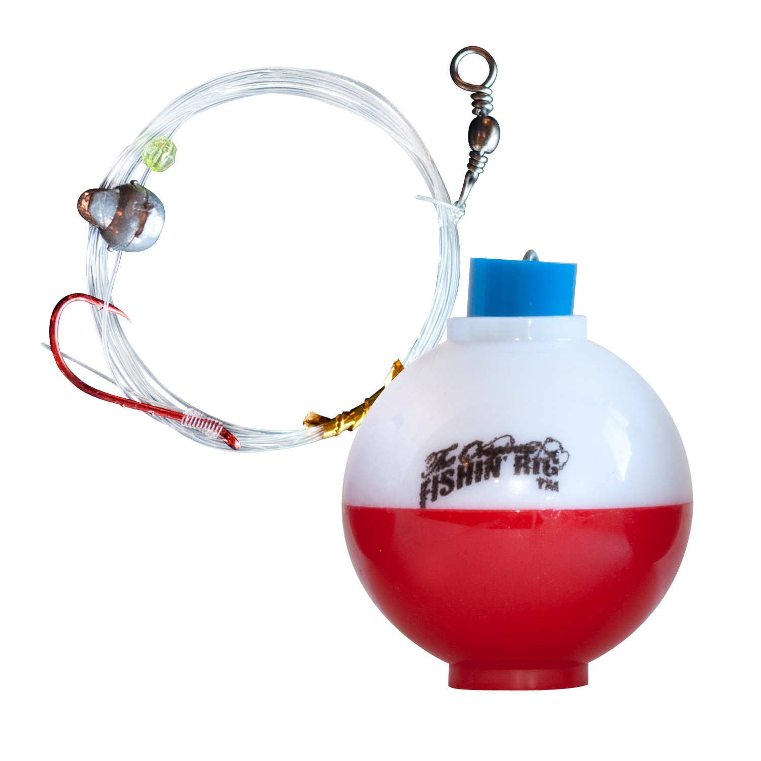 With The Original Fishing Rig we've taken the most versatile and effective rigging set-up, and put it together for you in a pre-tied rig that you can simply attach to your line and GO! This pre-tied rig features an innovative new patented swivel that won’t crank past your rod tip, and a faceted attractor bead that refracts light attracting feeding fish, inciting them to bite! The Original Fishing Rig comes all pre-tied and ready to fish in seconds! Contains a round red and white bobber, 4.5 ft of 20lb test line, #6 hook, sinker, patented custom swivel with one over-sized eyelet, and a faceted attractor bead... all pre-rigged and ready to just attach and fish!